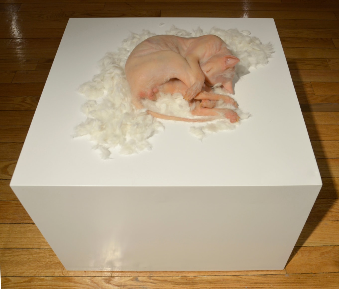 Shen Shaomin studies the explicit brutality of human nature through his multimedia work. Drawing from his innate conflict with the Anthropocene, Shen has created experimental, kinetic sculptures from animal bones that illustrate the consequences of human desire and artificiality. Meanwhile, his hyperreal, ‘sleeping’ sculptures of humans and animals reflect an ongoing dialogue between the real and the imaginary. In 2012, with the intent to strengthen inter-cultural relationships between Australia and China, Shen opened up his Beijing studio to young Australian artists for a residency and he continues to promote access to rising talents from both countries. His most current trompe l'oeil painting series borrow from Warholian studies of factory processes, where he paints portraits of celebrities covered with a light film of bubble wrap.
