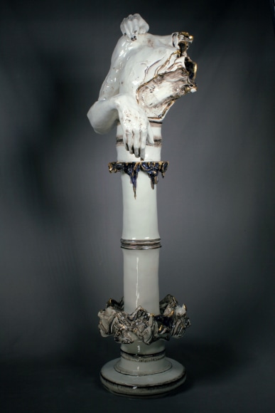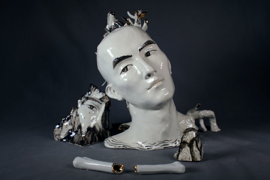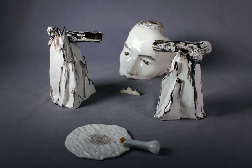 耿雪1983年生于中国吉林。2007年她毕业于中央美术学院雕塑系,后于2013年赴德国卡尔斯鲁厄艺术与设计大学进修。2014年耿雪获得中央美术学院版画系硕士学位,在学期间师从艺术家徐冰。耿雪游历世界的丰富经历,和对多元文化的体验造就了其当代的艺术风格,这种风格体现了她对世界的好奇和对传统文化的热忱,并在其雕塑作品中反映出来。在定格动画短片《海公子》(2014)中,耿雪将故事叙述与陶瓷这种视觉语言相结合,创作重现了清代著名文学著作《聊斋异志》中的传说故事。耿雪在进一步打磨了雕塑技艺以后,于2017年在凯尚推出了个展《须弥山》。此次展出的作品不仅有她擅长的瓷器,也加入了铜器雕塑。须弥山在佛教文化中被认为是一切物质与精神的中心。通过提出一些原始的哲学设问包括“我们是谁”, “我们在哪”,《须弥山》旨在探讨感官作为主观世界和客观世界交流渠道的各种问题。耿雪坚信艺术是一种巧妙的交流方式,而《须弥山》则是她展示自己对于雕塑创作态度和执着的当代表现形式。