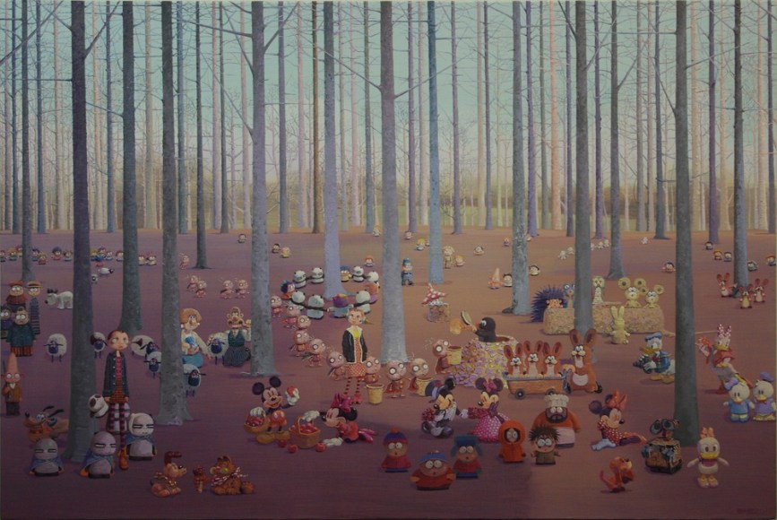 张弓于1959年出生于北京。自1993年毕业于中央工艺美术学院设计专业后,张弓创立了札根于超现实主义和流行文化的独特绘画风格。他的作品从美国和日本的动画人物造型及都市环境中汲取灵感,并兼具动画和摄影等媒介。他现任清华大学美术学院信息艺术设计系教授。