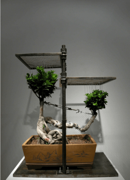 艺莱纽约画廊很荣幸能够展示沈少民在美国的首次个展,扭曲。作为一位世界知名的概念艺术家,沈少民将非常规媒介的运用推向新的极致,其作品对于从政治到人性等一系列当代社会问题作出评论。 此次展览将展出沈少民最新创作的盆栽水墨画作品。这些细致的绢本画虽然使用传统中国绘画技巧创作,在题材方面,艺术家却以扭曲盆栽植物的意象, 展现了强烈的当代艺术意涵。 新创作刻画八国集团高峰会世界首脑的艺术装置作品。在貌似毕恭毕敬的诠释中,沈少民以扭曲变形的帆布制造出公众人物“变脸”的视觉效果,由此讽刺地揭露出政客及其观点和承诺的多变性。此外,本次也将展出艺术家另一,综合这些新作品,再次确认了沈少民作为中国领先的概念艺术家的地位。 沈少民的“试验田”雕塑系列探寻关于进化和基因工程的种种观点。以其原话所言,“当今我们一直认为的‘自然’已转变为人造的,科技的以及社会性的事物,人类正按其意志兴趣创造一个人造世界。”沈少民的作品旨在传达一个针对人为干涉自然世界的警告信息。取材于动物骨头,艺术家组装出完全源于大脑凭空想象的具有博物馆陈列品水准的骷髅模型。借由“榕树”装置系列,艺术家进一步探索人类利用自然生物进行生物干涉的议题。摧残并矮化装饰植物的技艺已成为一种对于操控自然和美的比喻。怀着类似于“绑小脚”的概念,沈少民的作品展示出不断摧残及重塑自然生物所使用的暴力。他跨越传统榕树盆栽艺术的局限,利用一系列艺术手法肢解这些榕树盆栽,并对其随心所欲地捆绑。沈少民出生在中国黑龙江省,现今在澳大利亚悉尼和中国北京居住工作。其作品展览遍布全球,当前展出于纽约美国艺术及设计博物馆,芝加哥千禧年公园;之前曾展出于享誉盛名的悉尼双年展,悉尼亚澳艺术中心,耶路撒冷加沙河西岸博物馆,德国德累斯顿国家艺术收藏博物馆, 沃尔索新艺术美术馆,马尼拉大都会博物馆,广东省美术馆,柏林世界文化院,弗洛伦萨特罗齐宫博物馆,韩国汉城博物馆,以及北京今日美术馆等。这次展览将于2010年6月10日至7月14日在艺莱纽约画廊举行。艺术家会出席于6月10日下午7-10时举行的开幕招待会。