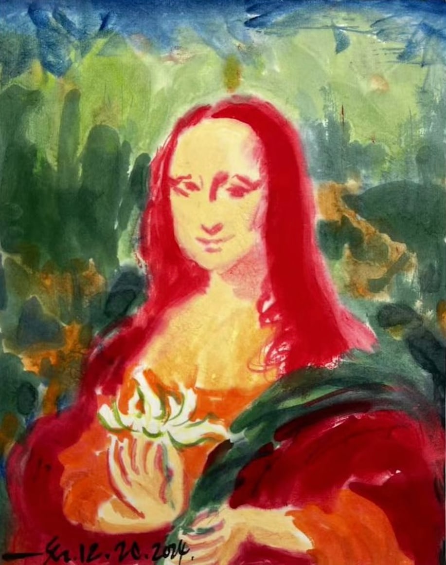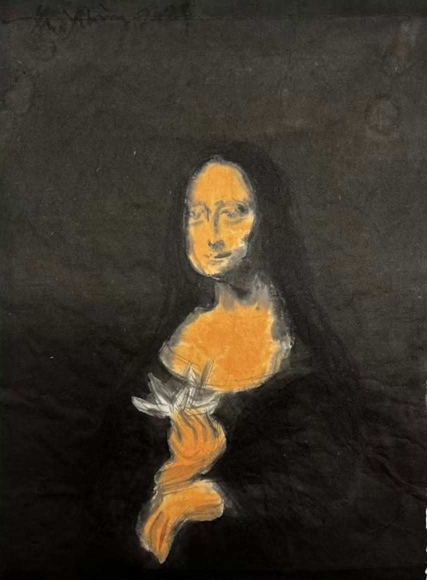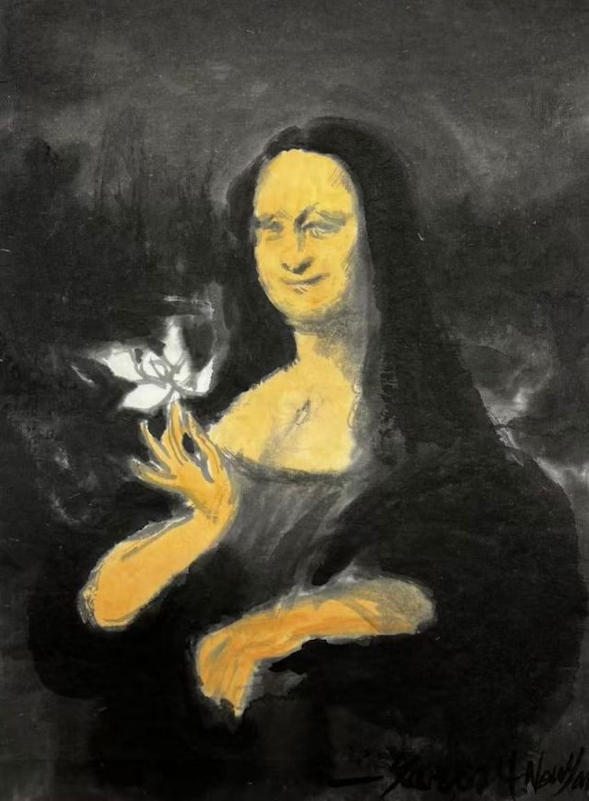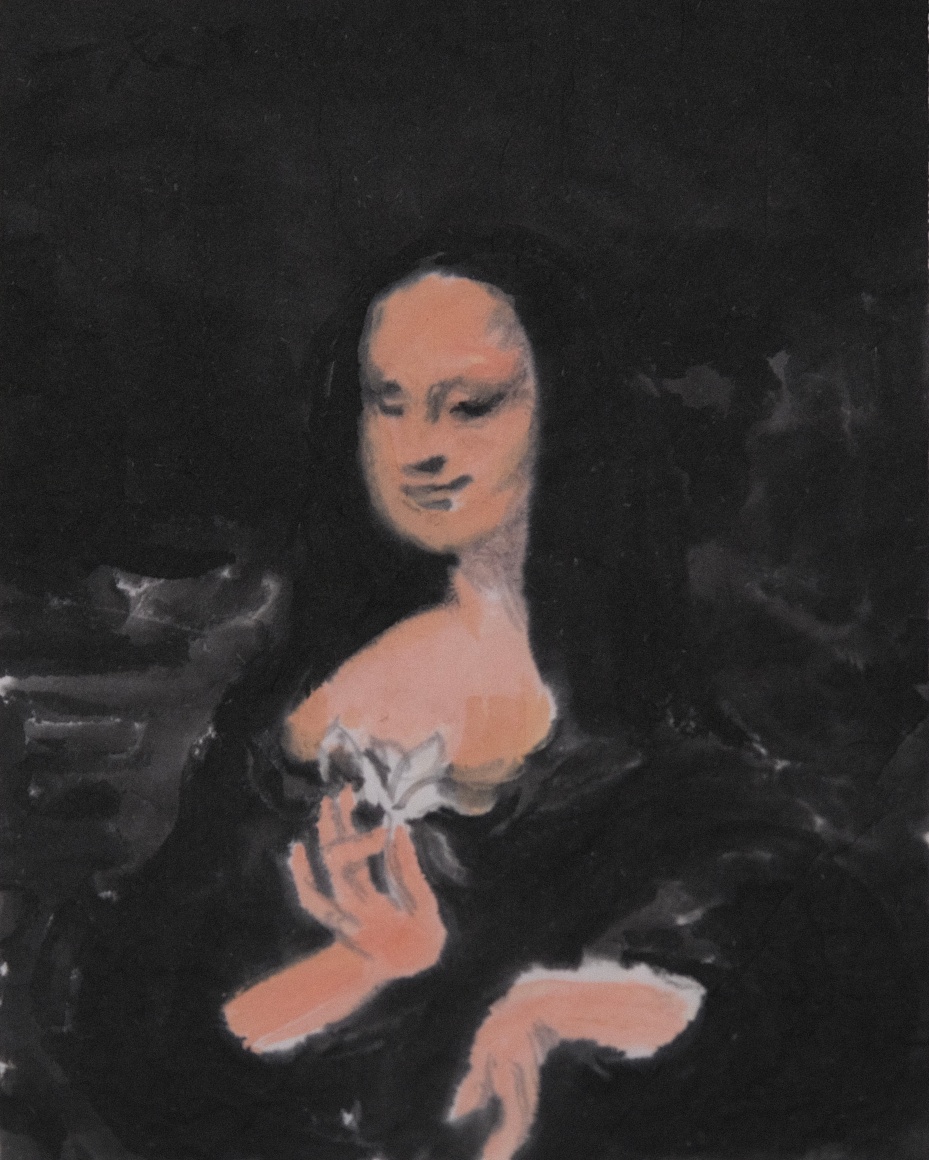B-Side Ink blurs the boundary between Eastern and Western traditions, particularly in portraiture, where Wu has drawn upon the Mona Lisa, who, like the Buddha, smiles softly in an eternal gesture of generosity to onlookers. In Flower Sermon, a series of five works which are featured in the exhibition, the Mona Lisa of Wu’s mind merges with the eponymous Buddhist gesture and virtuosic painting to form images of ambivalence, teetering between reverence and parody, yet always remaining profoundly sincere. Silhouetted by halos, Wu’s portraits scramble origin and cultural identity.