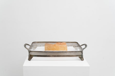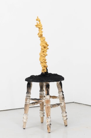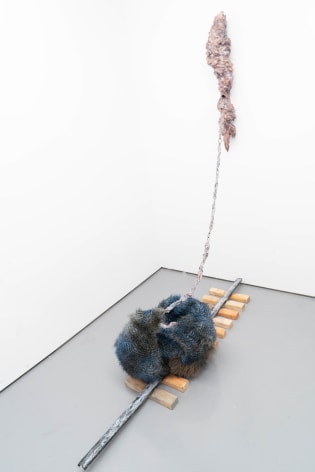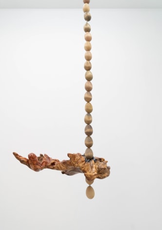 Finally, Echo Youyi Yan’s works present the metamorphosis of bodies in different contexts. Inspired by artists such as Pierre Huyghe, she creates research-driven works that are based on a myriad of fields including zoology, anthropology, and eroticism. During the residency, she extended the theme of domestication to domesticity, focusing on nature being tamed and housed under everyday purposes. As a resident artist of the gallery, Echo ironically and literally inspects the aspects of residency on a universal level: how lives might be transformed into tools; how utilities might be stripped away from pseudo-household objects; how intentions of tools might be miss-purposed. Technically, Echo’s new progression includes scraping away portions of stain and resin which she had been applying on her wood sculptures. This act of excavation mirrors an archaeological process, unearthing layers of meaning.