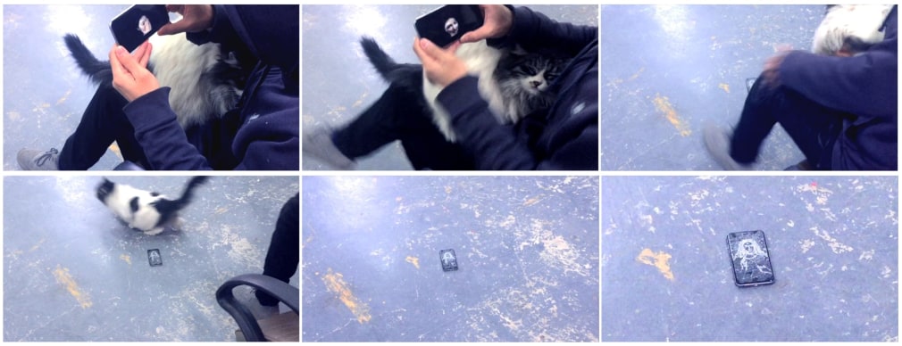 Liang Ban explores the theme of self-creating in a different realm. Often constructing a fictional narrative, Liang interweaves the real and the invented seamlessly through digital devices such as smartphones. Two videos--Short Trip to the Moon (2015) and Holy Friday (2016) --shown in the exhibition illustrate how the artist recounts real-life moments swiftly and humorously. In Short Trip to the Moon, a man played by the artist is stricken by lightning at the moment in which he is taking a picture with his selfie stick. The electrical power immediately runs through the man’s body, radiating his skeleton in an X-ray effect. Liang Ban’s works reveal his interest in alternating between reality and fantasy through his use of technical wizardry.