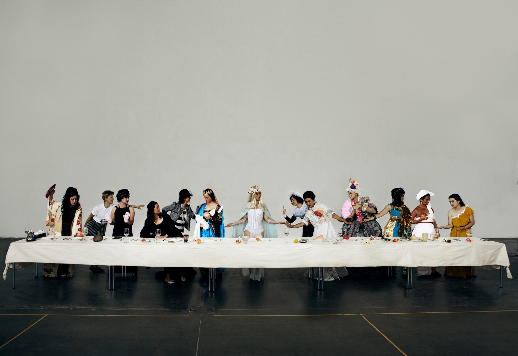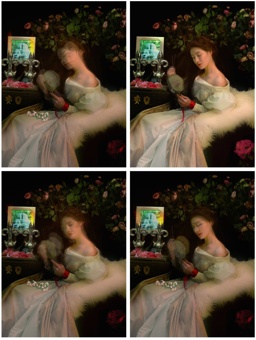 Reflecting upon the theme of “self-creating,” Ye Funa presents the “Goddess” series in which she masquerades as thirteen female figures who were prominent or controversial in history, fashion, literature, and art. In the artist’s three-channel video, Legend of the Wellknowns (2015), one of the characters she personifies is Leonardo Da Vinci’s Mona Lisa. The mysteriously smiled sitter reveals herself as in fact a “selfie goddess” through Ye’s reenacting, as she pouts her lips and gives a victory gesture. Adhering to her parodic manner in another video Mona Lisa (2015), Ye Funa replaces the exquisite composition of Mona Lisa and the landscape with a blinking woman sitting in front of a traditional Chinese landscape painting. Infused with the absurd, bantering, and vulgar, Ye’s “Goddess” series examines the construction of identity and the artifice of image, it also elaborates on the recurring theme of the role of female, the idea of beauty, and the female sensibility in Ye’s recent works.