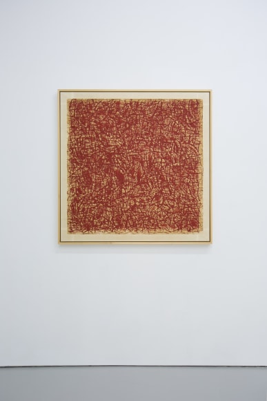 Contemporary art in China was mostly dominated by Social Realism until it experienced a profound shift in 1978 with Deng Xiaoping’s establishment of a new Open Door policy for the country. With the sudden availability of Western art publications, many artists began to adopt the Western style as a new mode of creating art, yet Shen rooted his work in Eastern philosophy in his pursuit of modernity. Whereas Western Abstract Expressionism is often associated with action painting and direct, energetic brushstrokes, Shen, in his 1992 and 1993 oil on paper works, indirectly imprint oil through the gesture of rubbing—a technique that has been practiced in China for thousands of years—symbolizing Confucian values of order and moderation and other Eastern philosophical principles.