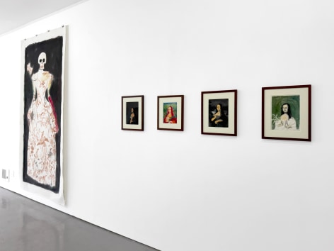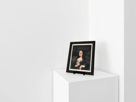 B-Side Ink blurs the boundary between Eastern and Western traditions, particularly in portraiture, where Wu has drawn upon the Mona Lisa, who, like the Buddha, smiles softly in an eternal gesture of generosity to onlookers. In Flower Sermon, a series of five works which are featured in the exhibition, the Mona Lisa of Wu’s mind merges with the eponymous Buddhist gesture and virtuosic painting to form images of ambivalence, teetering between reverence and parody, yet always remaining profoundly sincere. Silhouetted by halos, Wu’s portraits scramble origin and cultural identity.