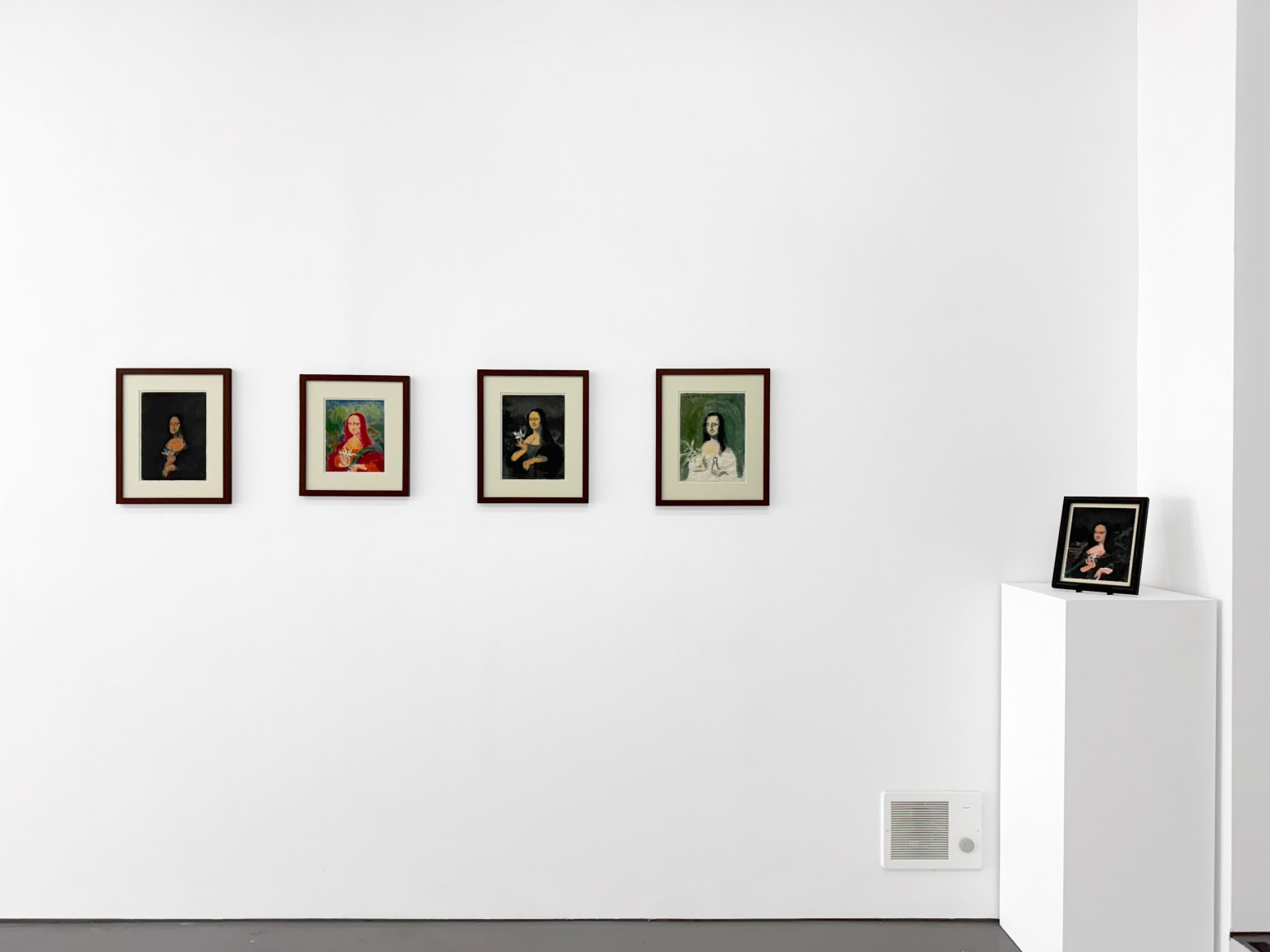 B-Side Ink blurs the boundary between Eastern and Western traditions, particularly in portraiture, where Wu has drawn upon the Mona Lisa, who, like the Buddha, smiles softly in an eternal gesture of generosity to onlookers. In Flower Sermon, a series of five works which are featured in the exhibition, the Mona Lisa of Wu’s mind merges with the eponymous Buddhist gesture and virtuosic painting to form images of ambivalence, teetering between reverence and parody, yet always remaining profoundly sincere. Silhouetted by halos, Wu’s portraits scramble origin and cultural identity.
