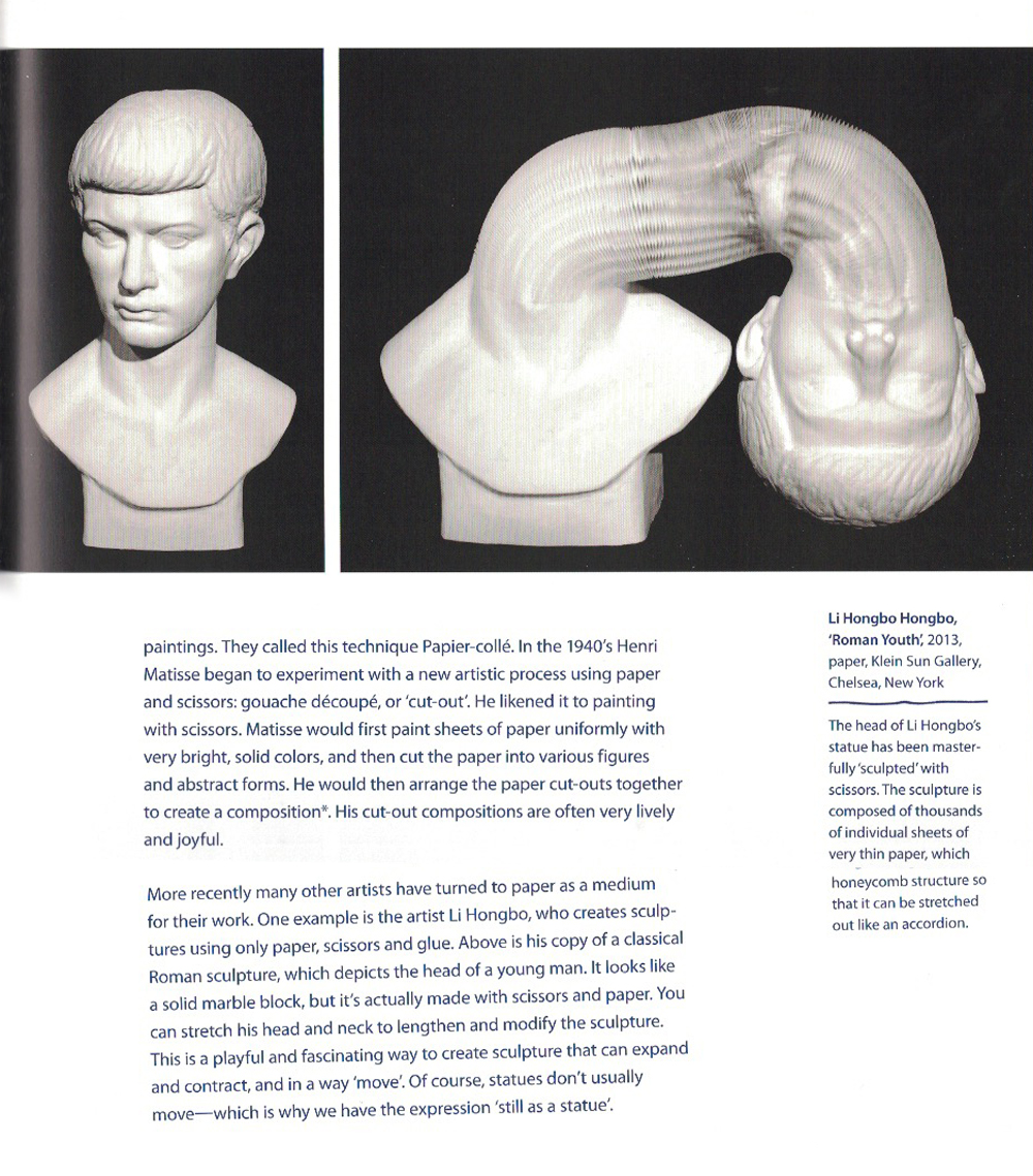 Children's publication "12 Art Materials Children Should Know" features Li Hongbo's paper sculptures.