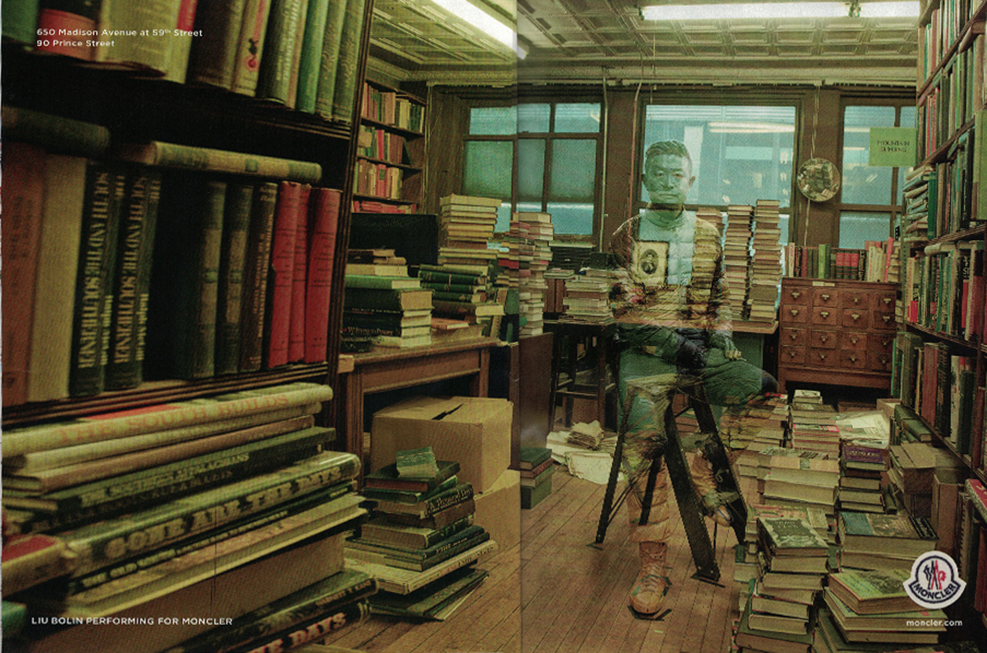 Liu Bolin's collaboration with Annie Leibovitz and Moncler.