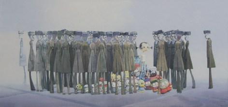 张弓于1959年出生于北京。自1993年毕业于中央工艺美术学院设计专业后,张弓创立了札根于超现实主义和流行文化的独特绘画风格。他的作品从美国和日本的动画人物造型及都市环境中汲取灵感,并兼具动画和摄影等媒介。他现任清华大学美术学院信息艺术设计系教授。
