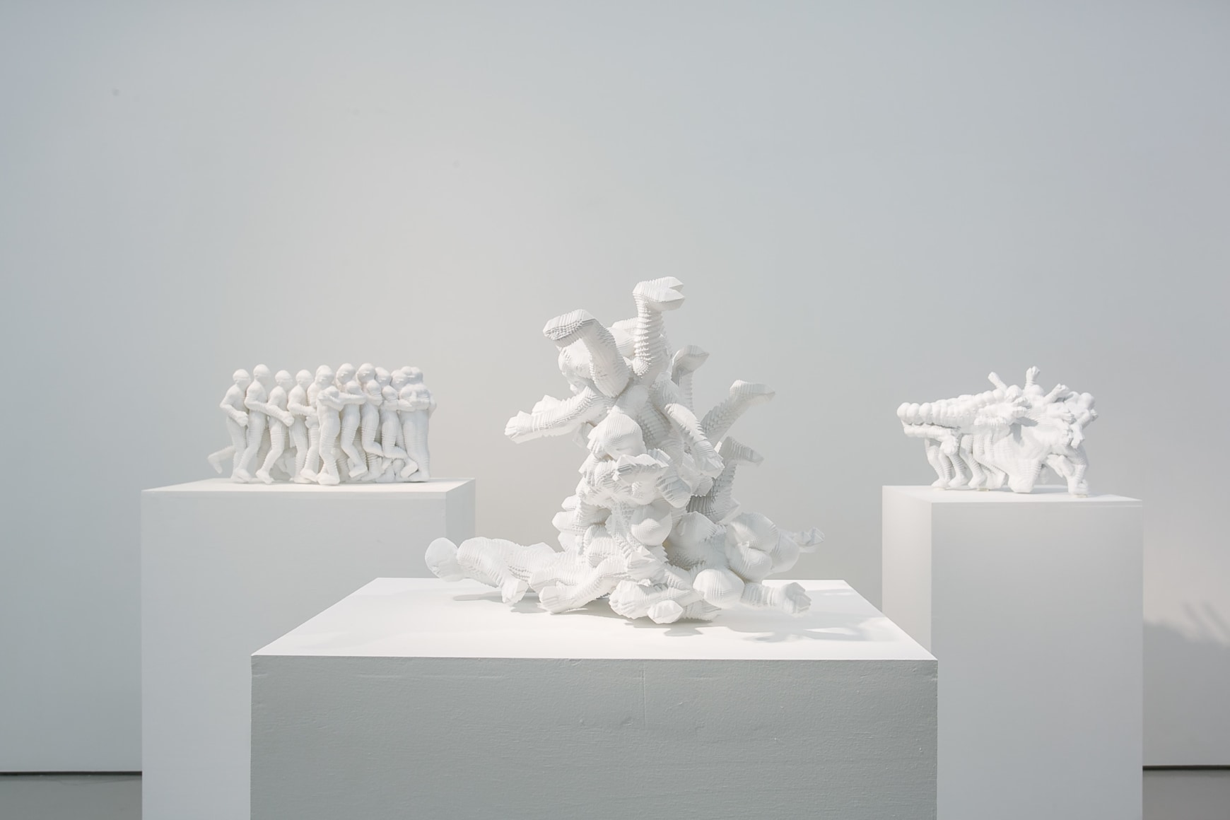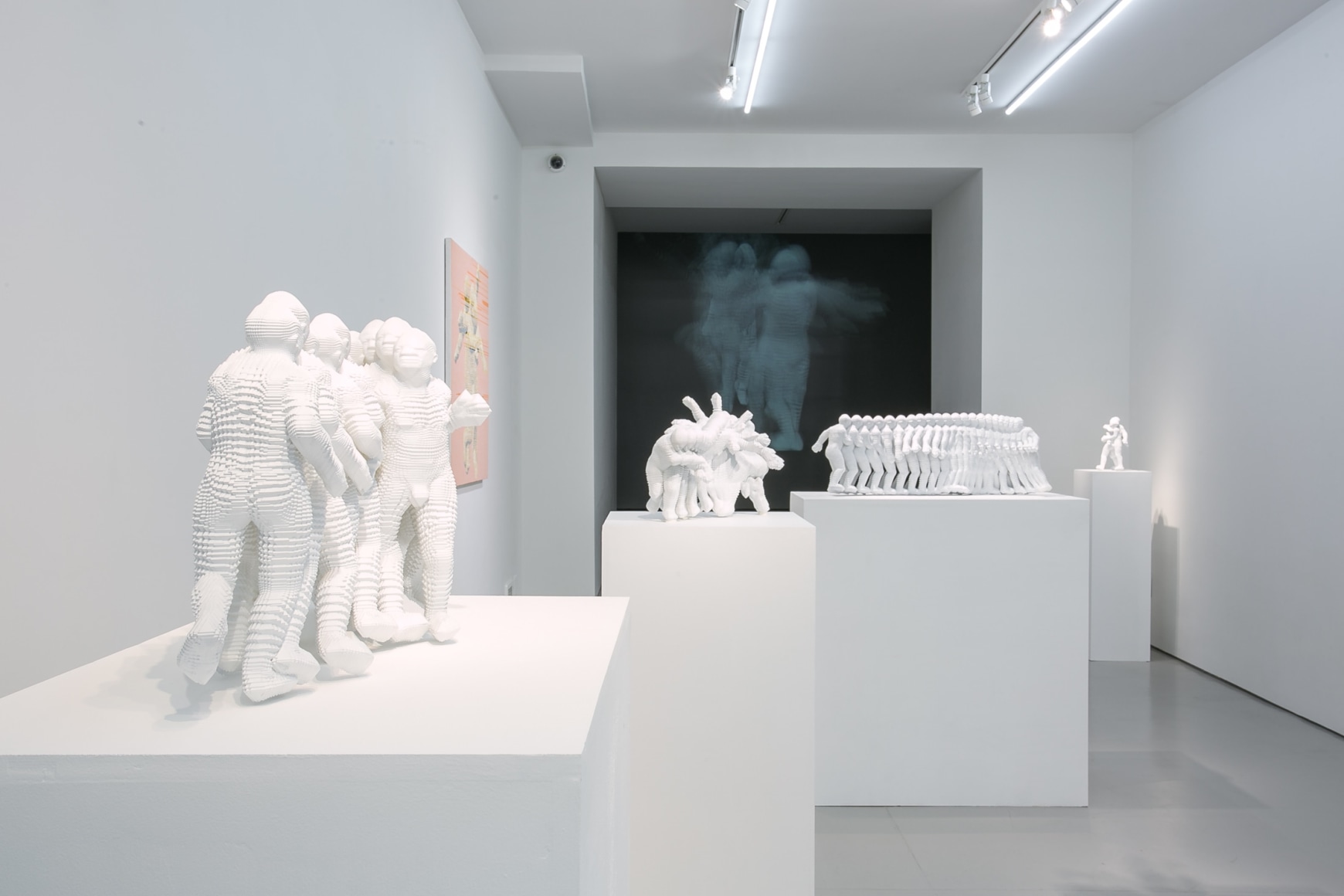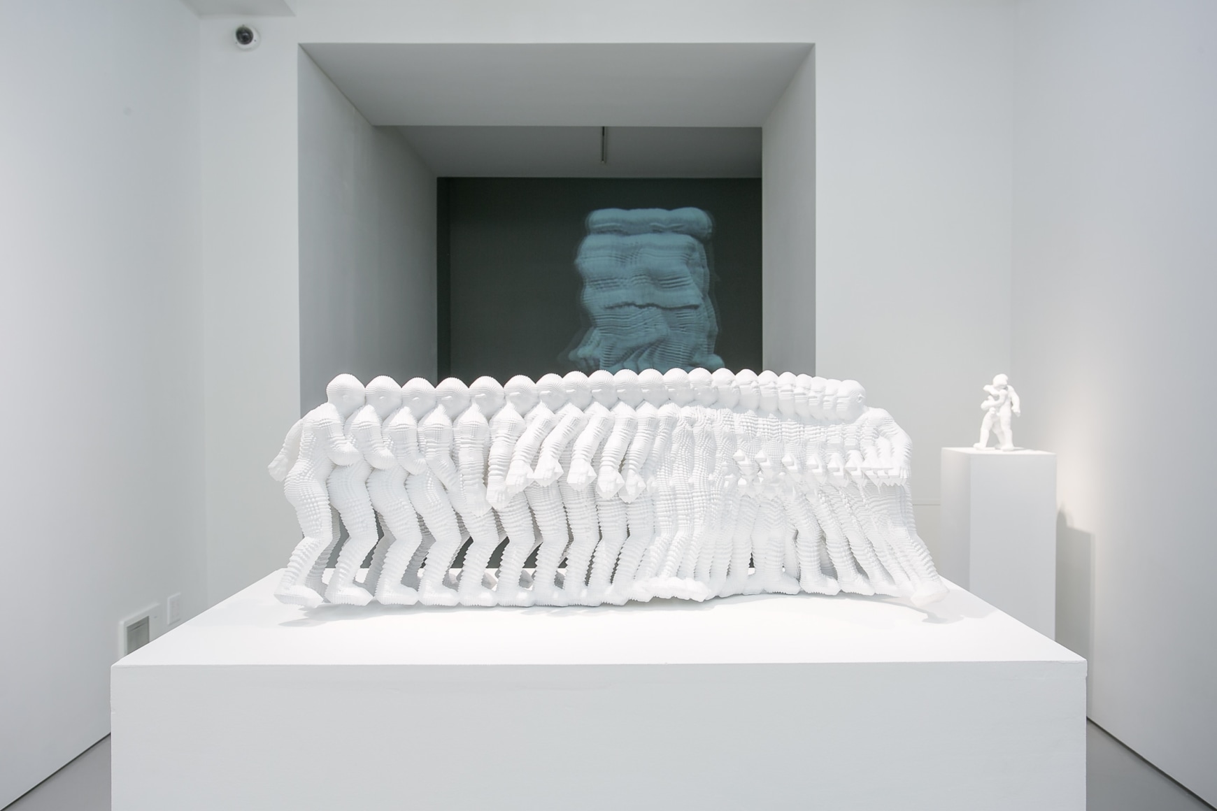 时间,作为第四个维度,在这一以3D技术为灵感的系列作品中被强调和突显。具有讽刺意义的是,一方面,单一的人物通过时间推移,造成了一个又一个残影,所有残影的合集组成了具有动态感的作品,展现了一个人物是如何在时间的推移中发展出一组连续又连贯的动态形象的,这点看似合情合理。但另一方面,当由第一、第二以及第三维度组成的等式中搅入时间维度这个新的因数时,作品的最终呈现却未直接展现出维度上的递增。对于作品中巧妙呈现的这个有关维度的悖论迷宫,或许我们能从海德格尔(Heidegger)的字里行间寻求到可能的出口:“时间不是一个对象,它不像时间中的存在那般短暂,时间在一种恒定的状态下流逝。”