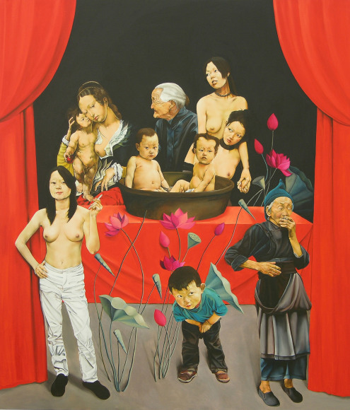 Xiao Se’s technically masterful paintings draw on imagery from both the Eastern and Western artistic tradition. This exhibition showcases a body of work which presents Xiao Se’s observations of present day China in which traditional heritage, a communist past, and modernity coexist. His work is deeply influenced by Western masters, often imbuing Western or religious figures with Chinese characteristics, or surrounding them by typical Chinese scenes and traditional symbols.