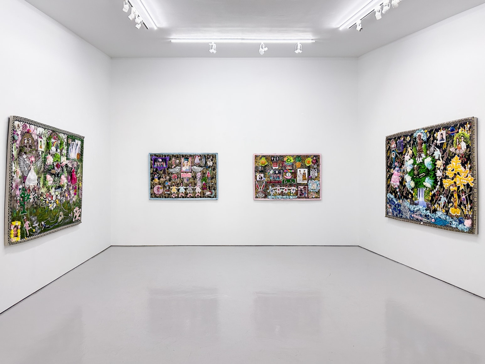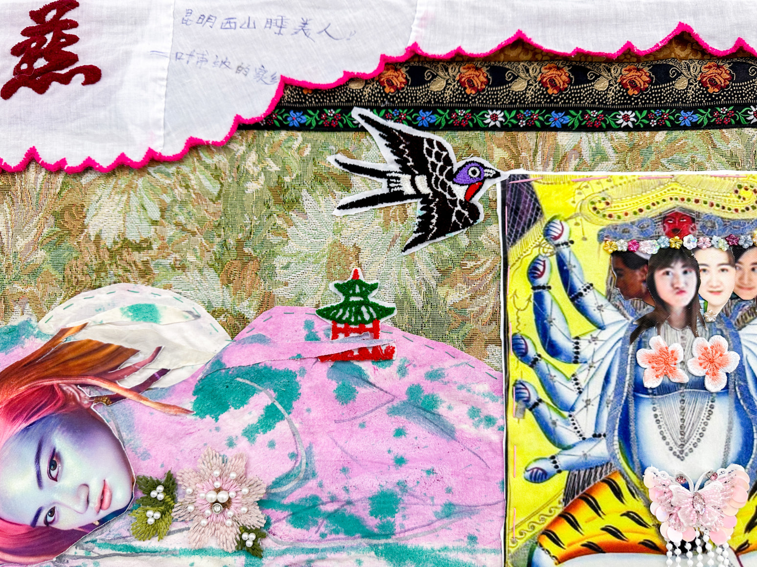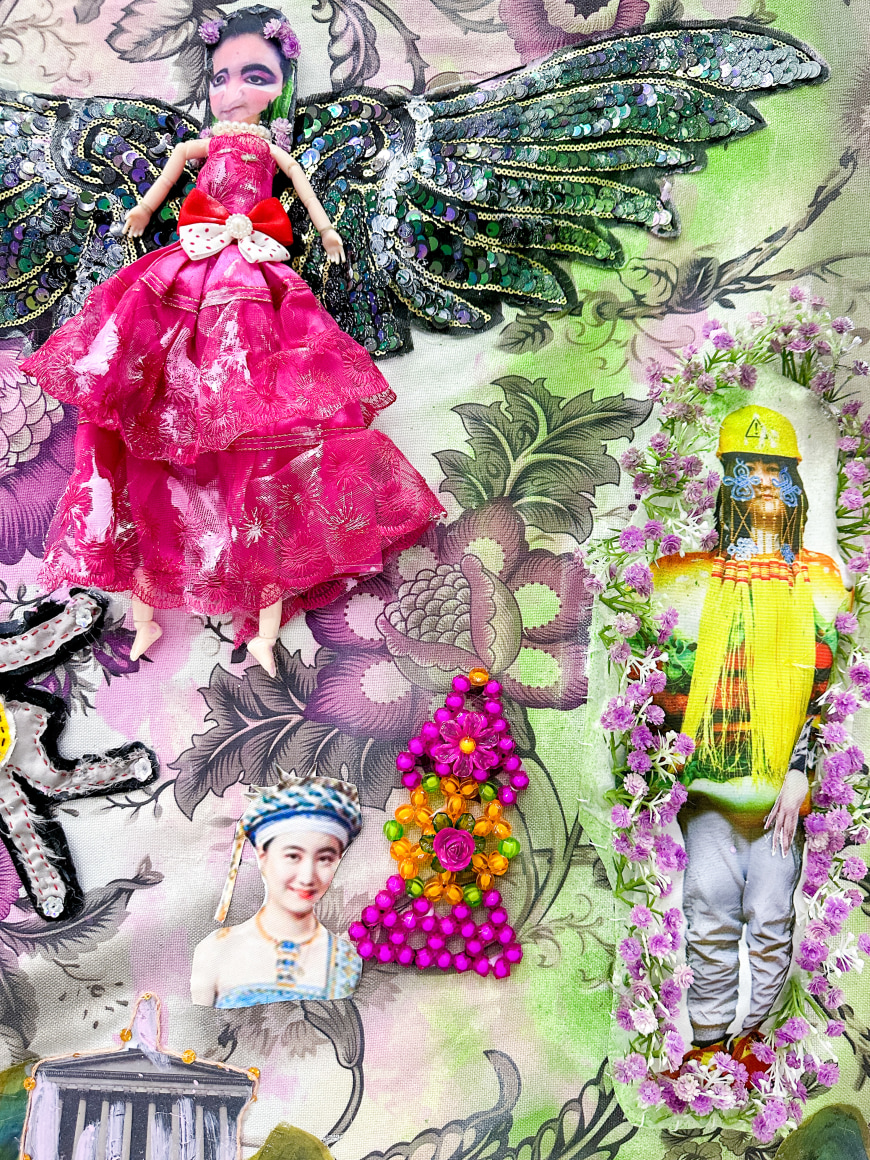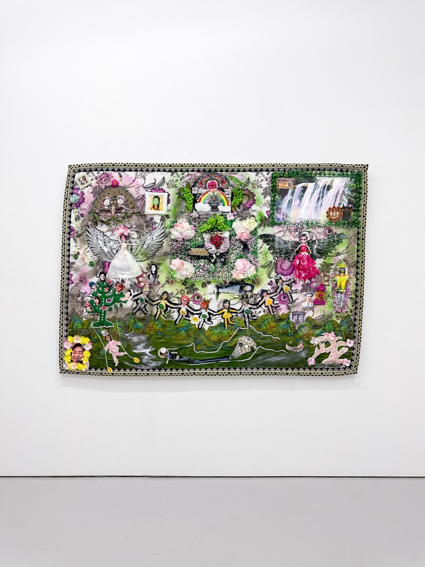 Eli Klein Gallery is honored to present “The Big Dream Show,” Ye Funa’s first solo show with the gallery. The exhibition features 12 new mixed media collage works from the “Neo Folk Matrix” series, in addition to a video and two paintings, each demonstrating a unique “dream” where different characteristics, items, symbols, colors, traditions, and cultures intersect. Filled with intricate details, these pieces are elaborately executed and contain a variety of elements such as plastics, artificial crystals, metals, fabrics, and an assortment of found objects. These “little worlds and dreams,” in Ye Funa’s own words, highlight her aspiration to explain what roles “folk” should play under the framework of contemporary art.