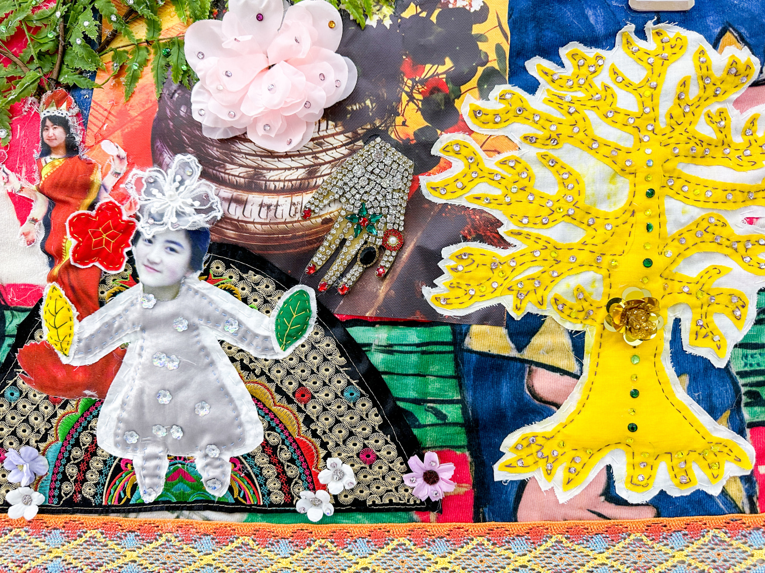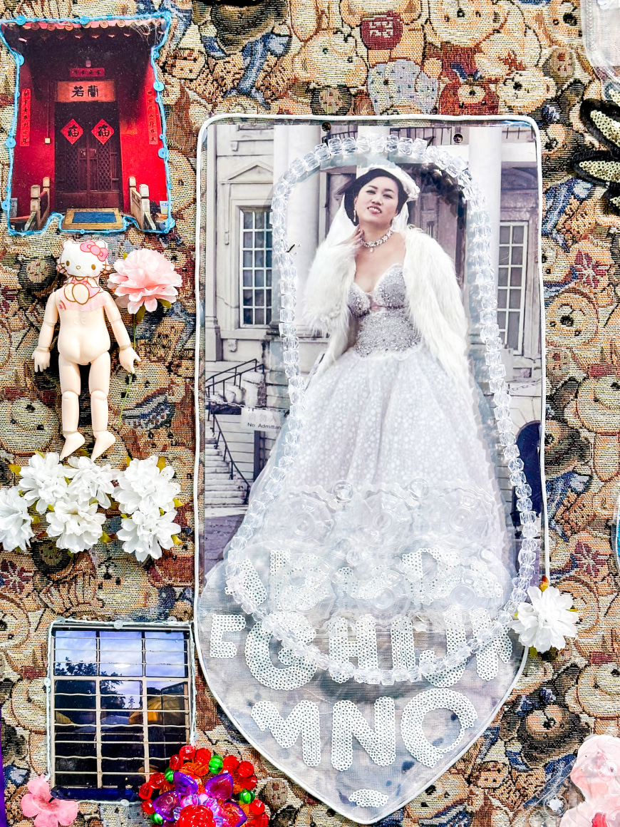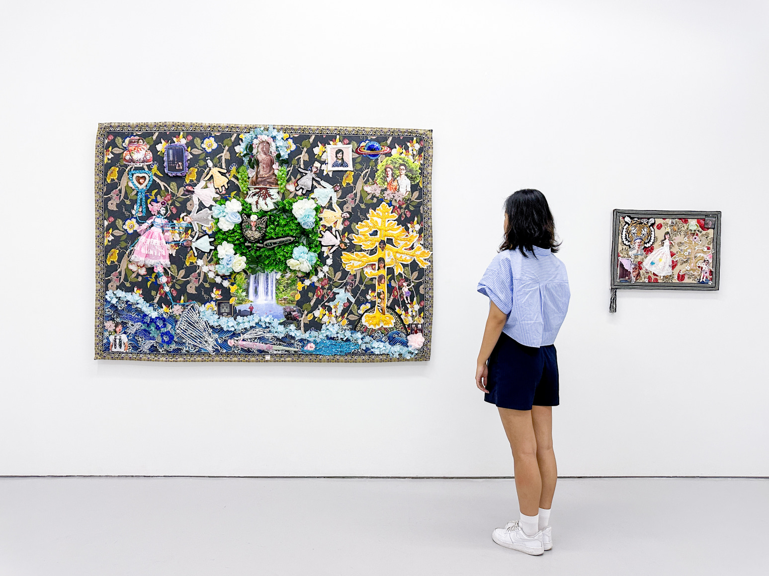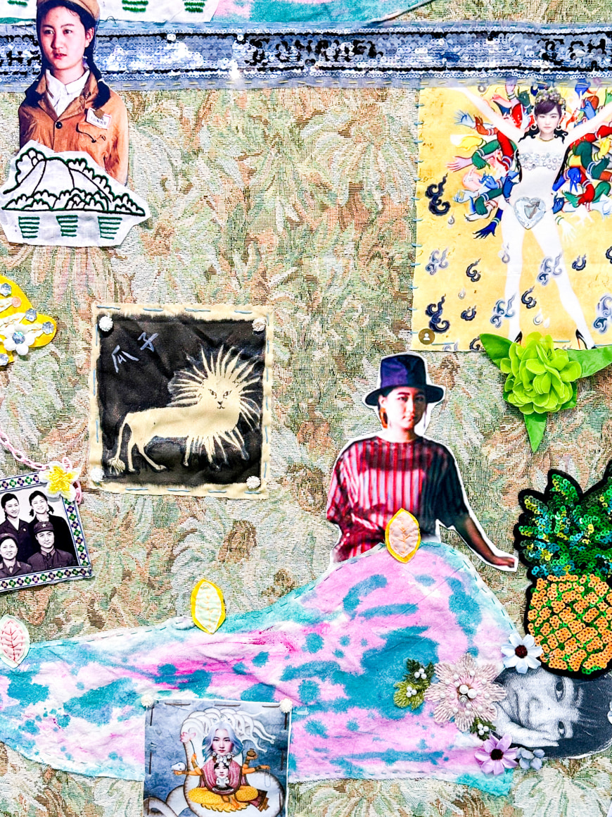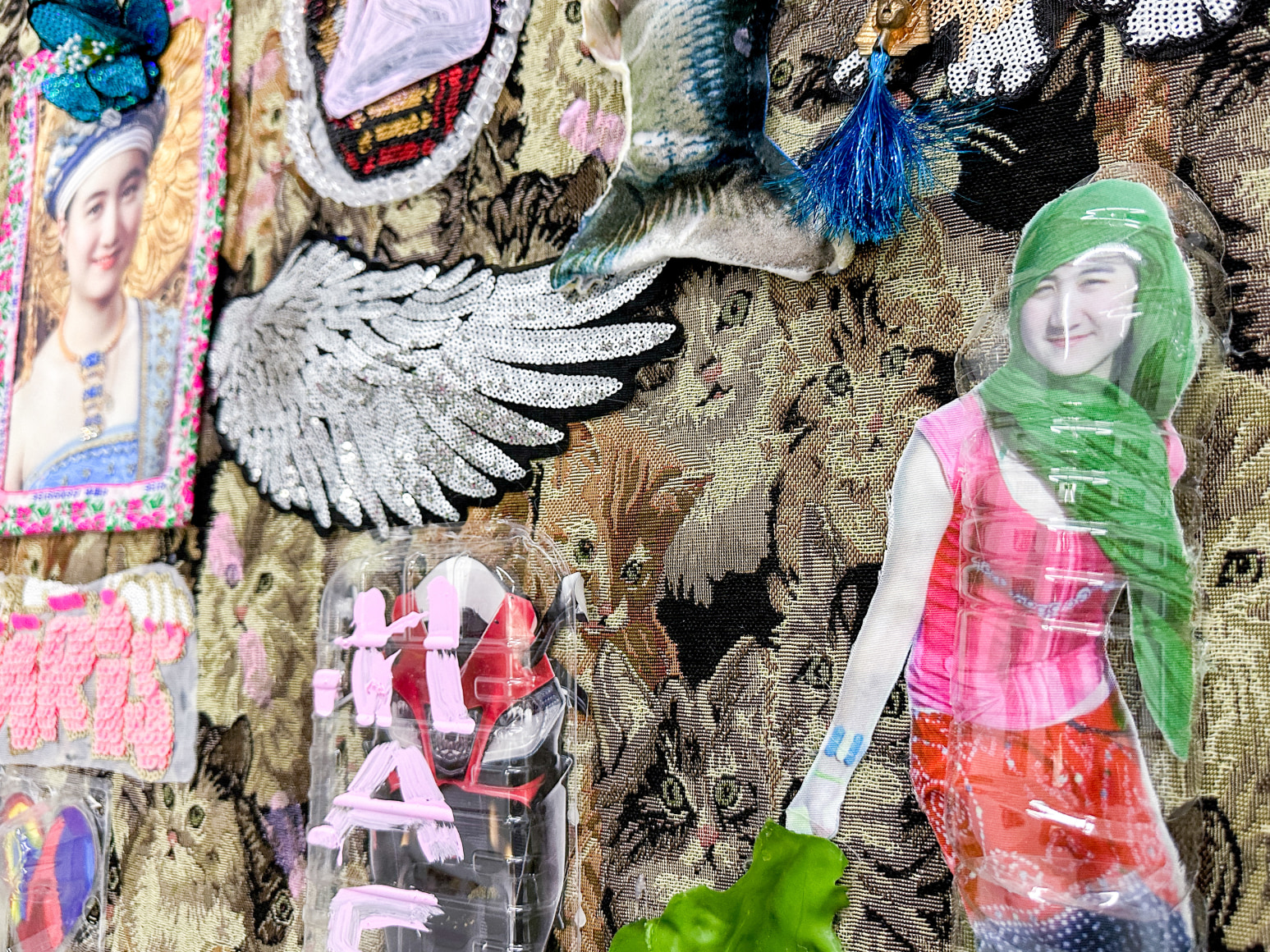 Eli Klein Gallery is honored to present “The Big Dream Show,” Ye Funa’s first solo show with the gallery. The exhibition features 12 new mixed media collage works from the “Neo Folk Matrix” series, in addition to a video and two paintings, each demonstrating a unique “dream” where different characteristics, items, symbols, colors, traditions, and cultures intersect. Filled with intricate details, these pieces are elaborately executed and contain a variety of elements such as plastics, artificial crystals, metals, fabrics, and an assortment of found objects. These “little worlds and dreams,” in Ye Funa’s own words, highlight her aspiration to explain what roles “folk” should play under the framework of contemporary art.