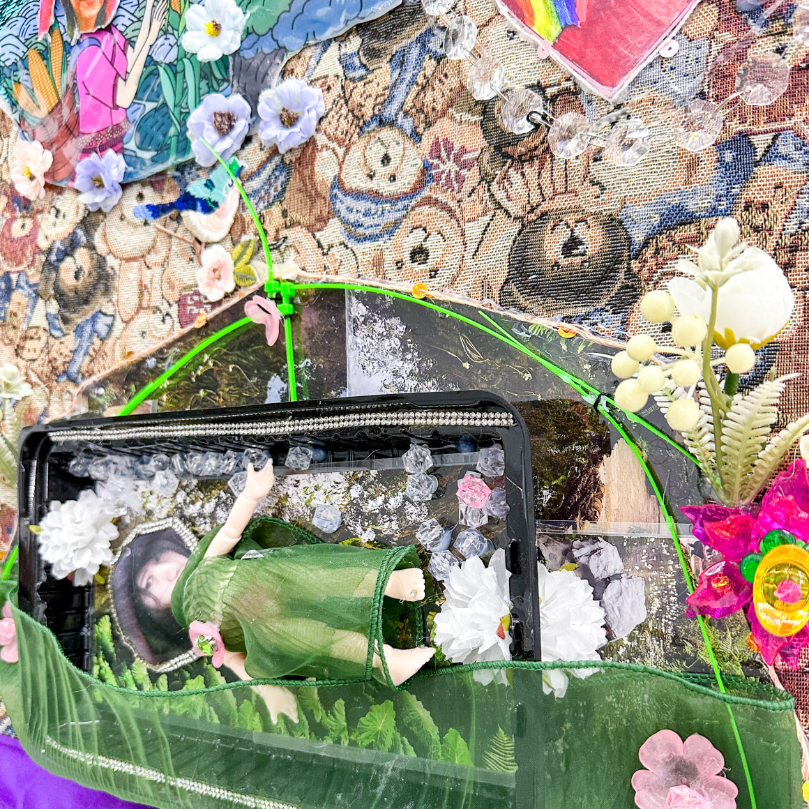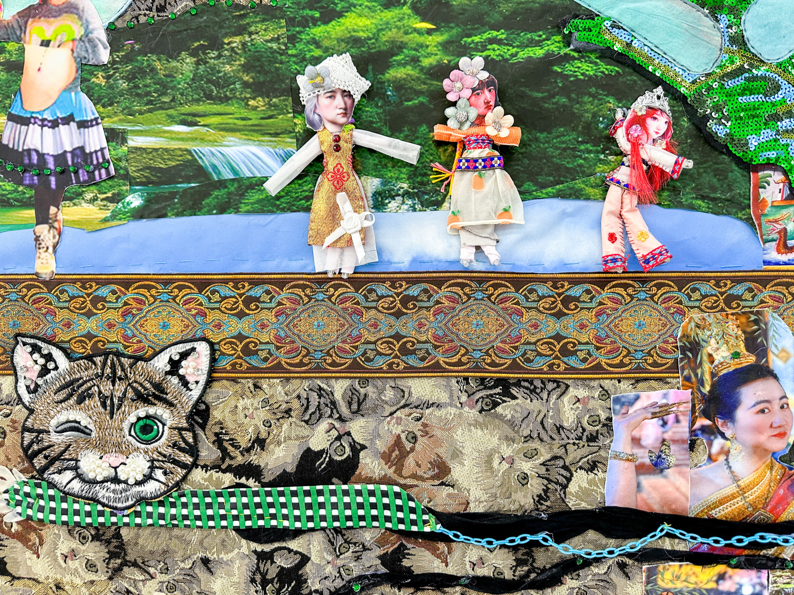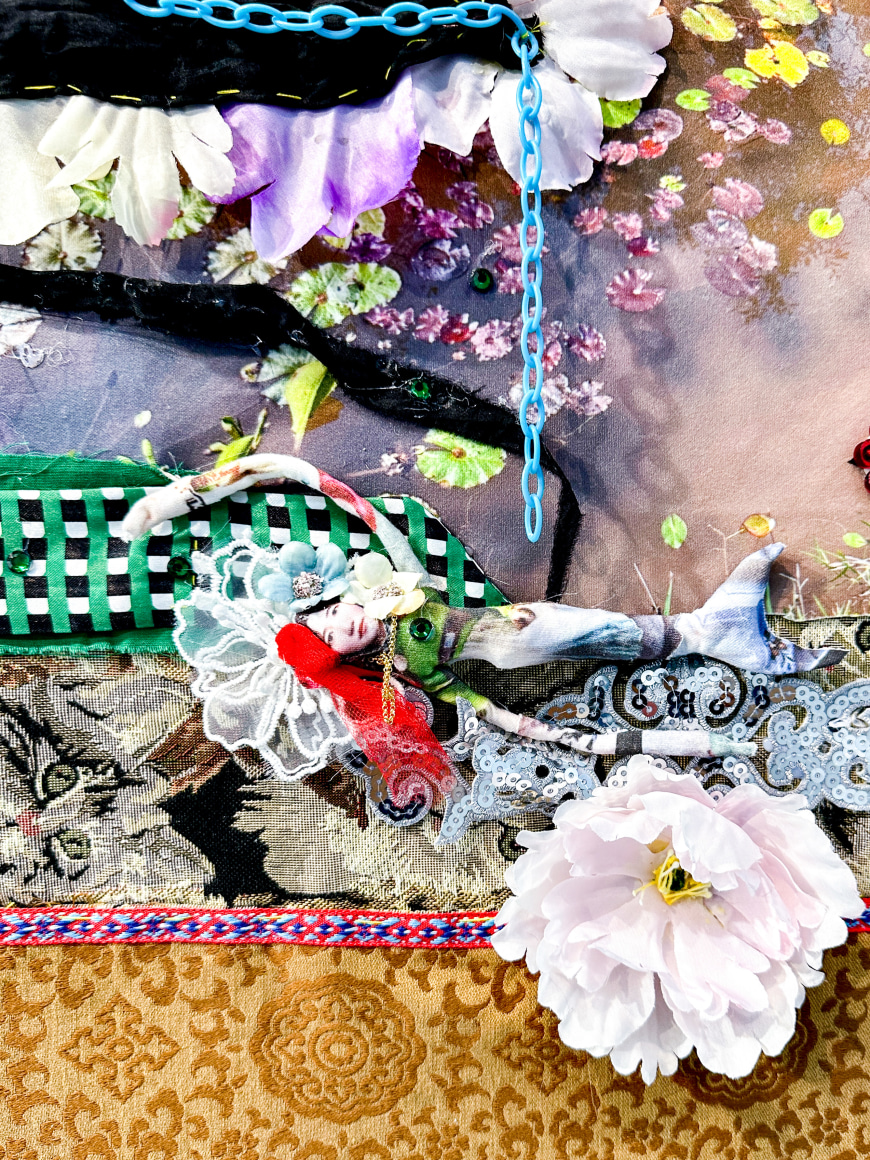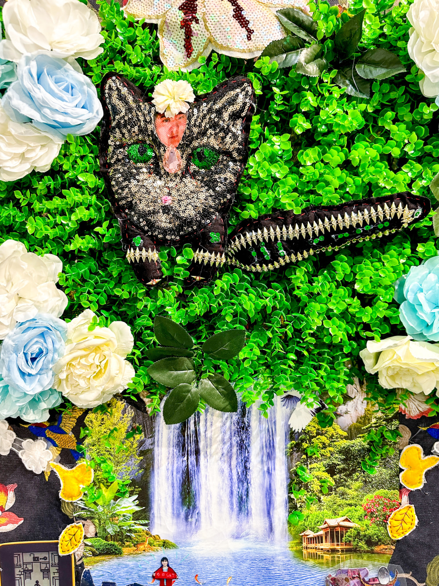 Eli Klein Gallery is honored to present “The Big Dream Show,” Ye Funa’s first solo show with the gallery. The exhibition features 12 new mixed media collage works from the “Neo Folk Matrix” series, in addition to a video and two paintings, each demonstrating a unique “dream” where different characteristics, items, symbols, colors, traditions, and cultures intersect. Filled with intricate details, these pieces are elaborately executed and contain a variety of elements such as plastics, artificial crystals, metals, fabrics, and an assortment of found objects. These “little worlds and dreams,” in Ye Funa’s own words, highlight her aspiration to explain what roles “folk” should play under the framework of contemporary art.