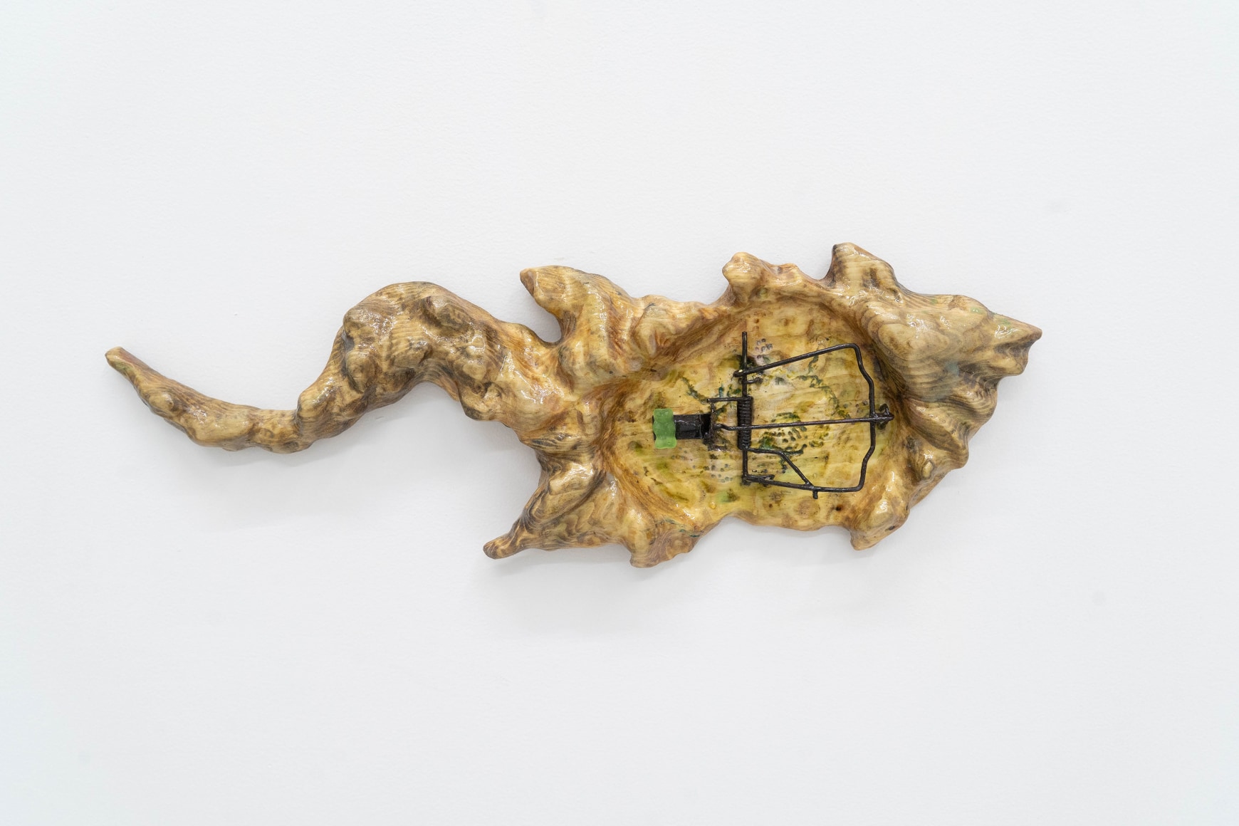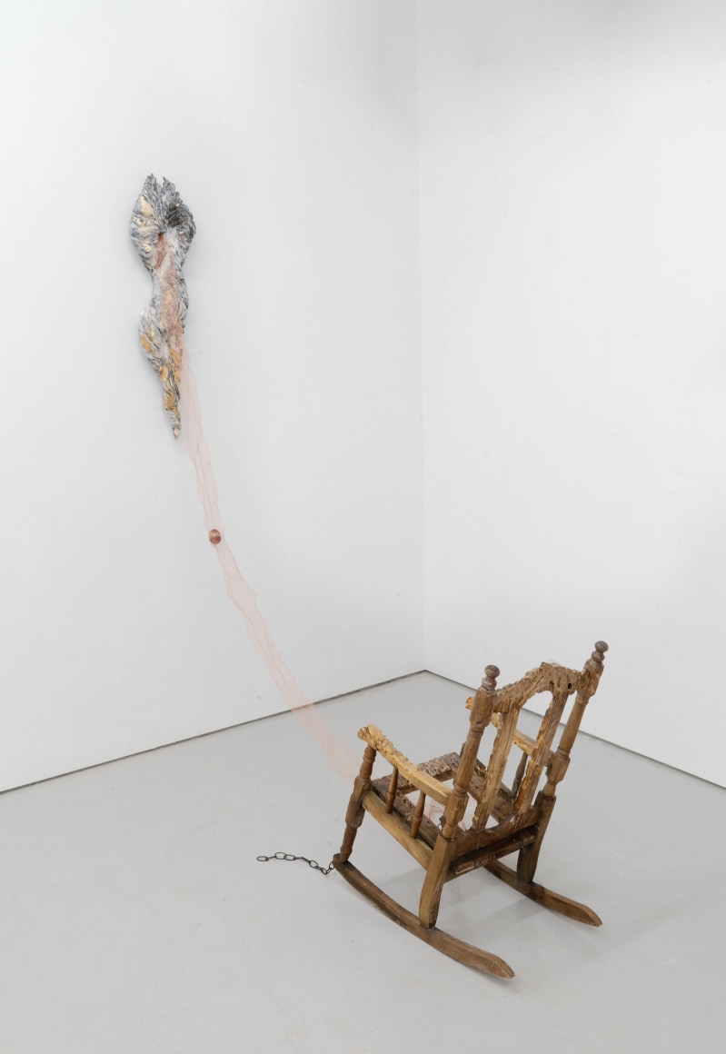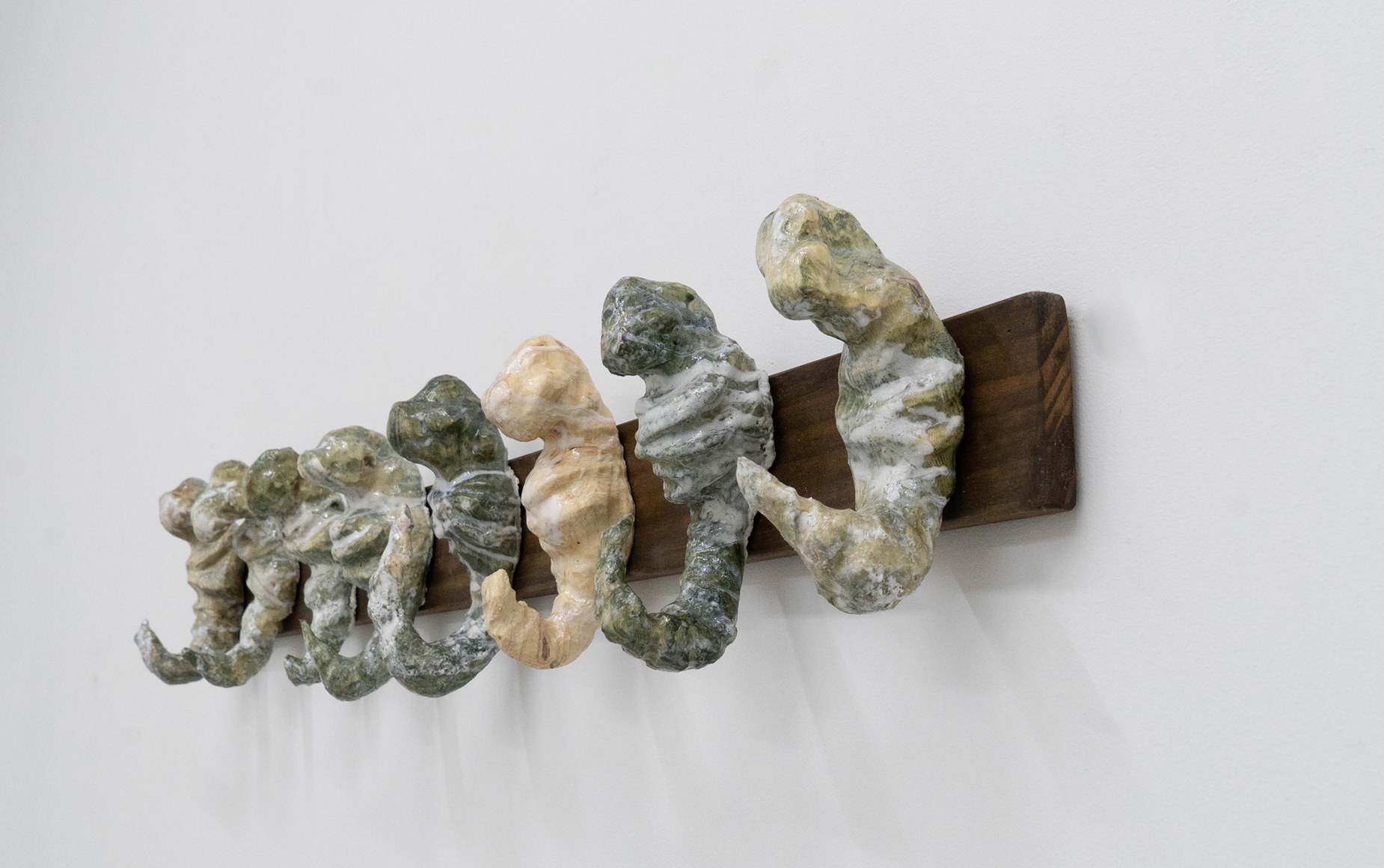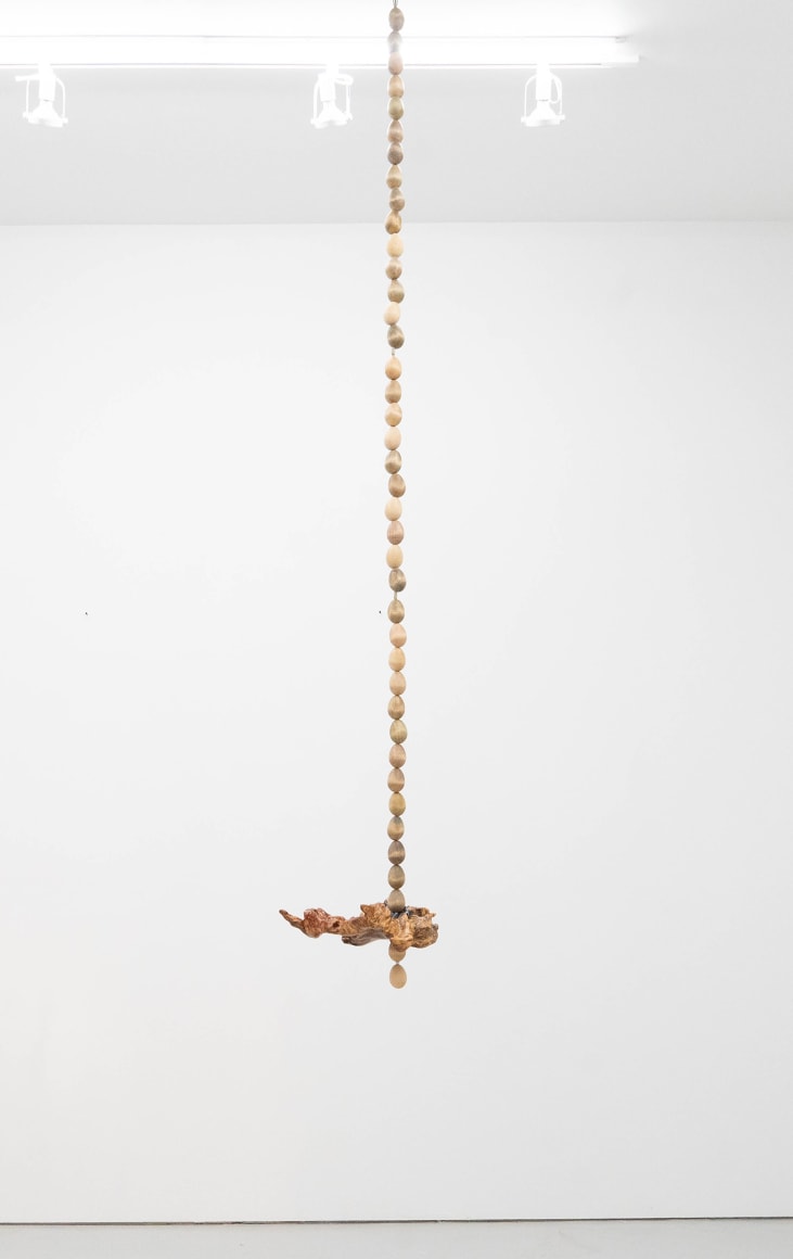 Finally, Echo Youyi Yan’s works present the metamorphosis of bodies in different contexts. Inspired by artists such as Pierre Huyghe, she creates research-driven works that are based on a myriad of fields including zoology, anthropology, and eroticism. During the residency, she extended the theme of domestication to domesticity, focusing on nature being tamed and housed under everyday purposes. As a resident artist of the gallery, Echo ironically and literally inspects the aspects of residency on a universal level: how lives might be transformed into tools; how utilities might be stripped away from pseudo-household objects; how intentions of tools might be miss-purposed. Technically, Echo’s new progression includes scraping away portions of stain and resin which she had been applying on her wood sculptures. This act of excavation mirrors an archaeological process, unearthing layers of meaning.