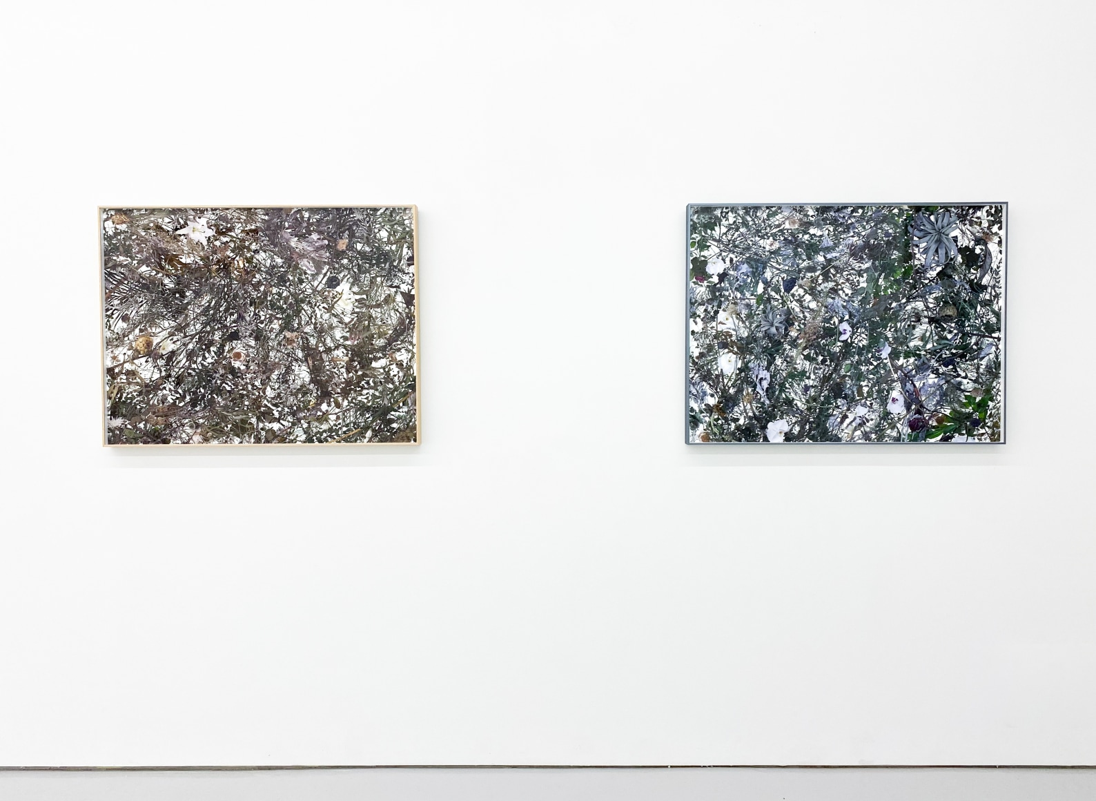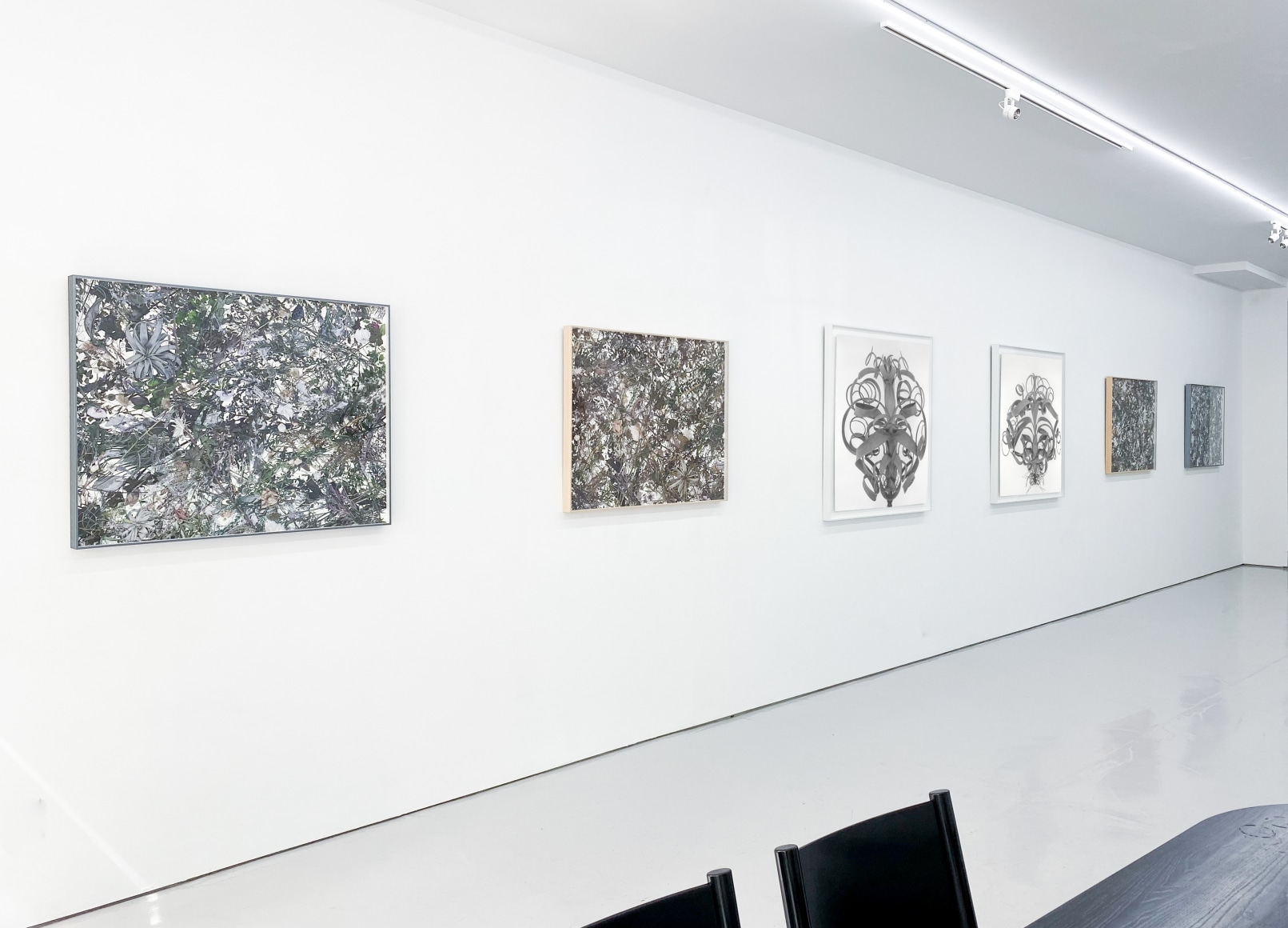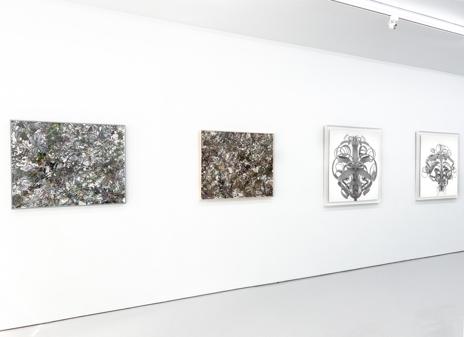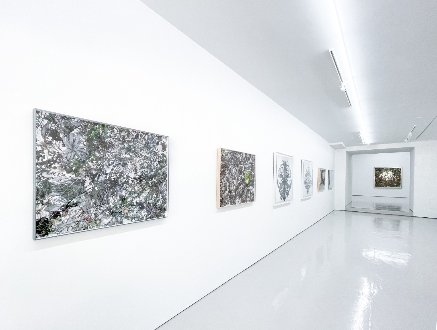 This exhibition is also the debut of the Plant portrait - Tillandsia (2022) series. In contrast to Ji Zhou’s other works in this show, sophisticated plant arrangements are absent. Tillandsia, a tenacious plant that can grow merely by absorbing nutrients and moisture in the air, are presented in monochrome in this series. Even in a “hopeless” environment, this plant can still grow exuberantly. Each work was made by combining two photographs: the left and right half. While both photos seem to match perfectly in each work, there are still subtle dissonances. In fact, Ji Zhou intentionally arranged the photos to create a barely noticeable distinction in each work, creating another layer of artificiality to what at first glance, suggests natural growth. Under this symbiotic setup, different snapshots are fused into a new hybrid.