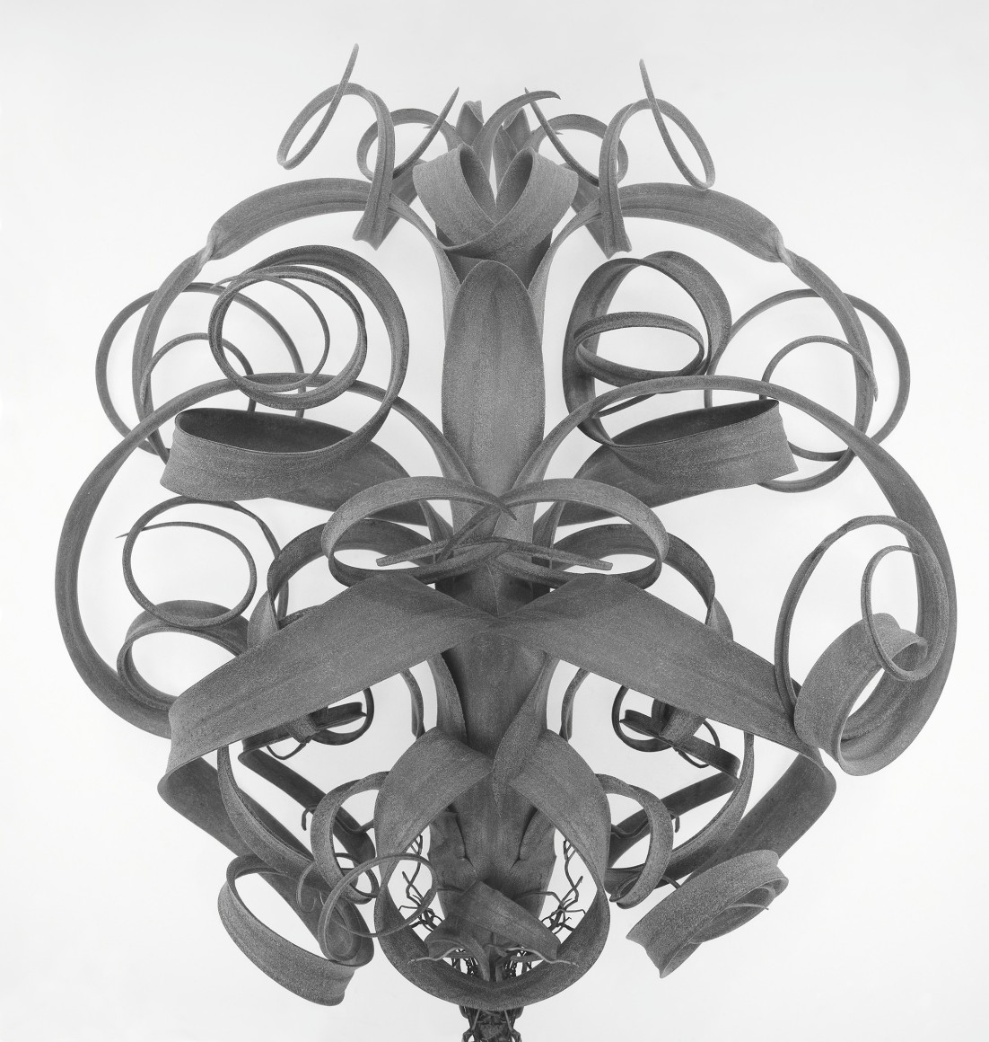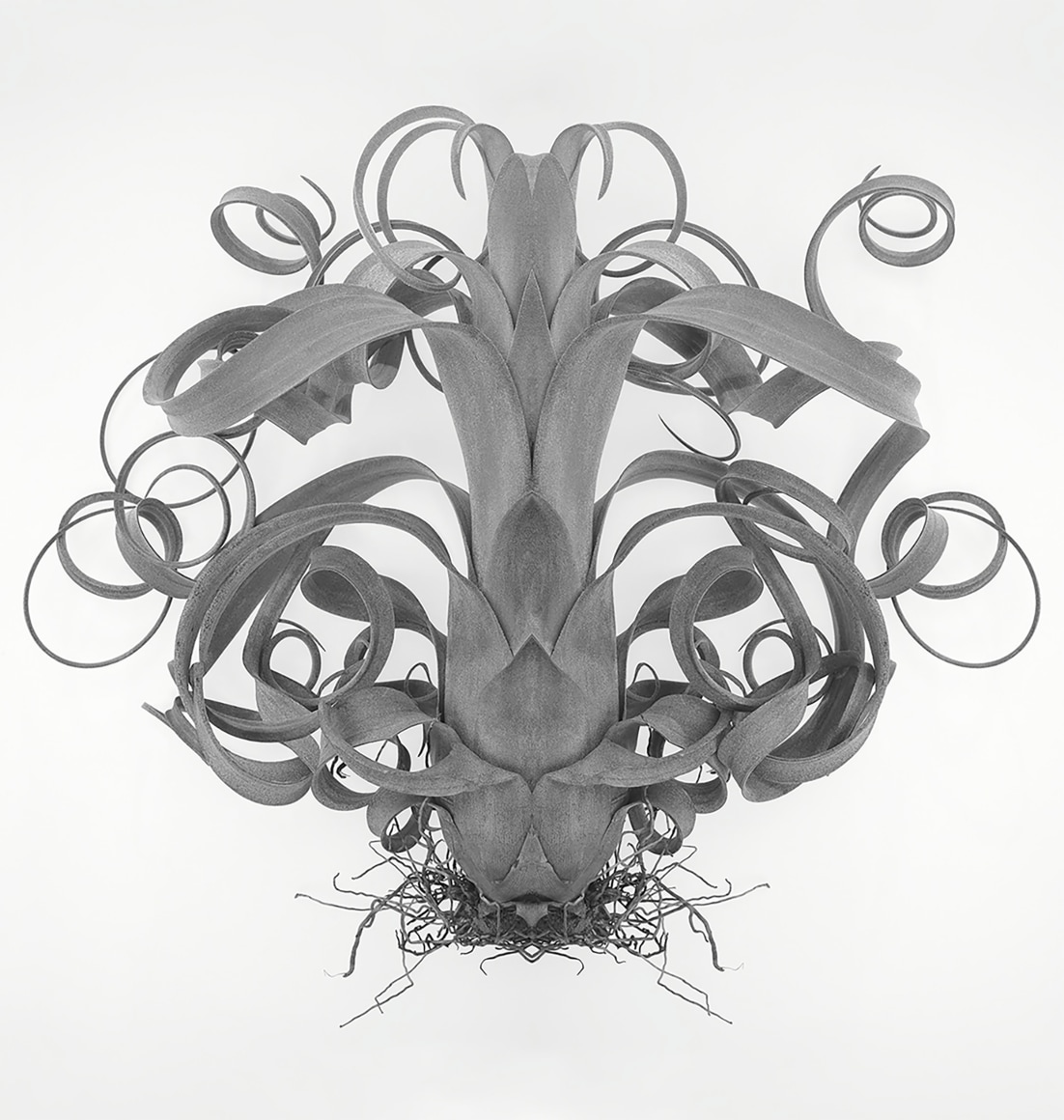 This exhibition is also the debut of the Plant portrait - Tillandsia (2022) series. In contrast to Ji Zhou’s other works in this show, sophisticated plant arrangements are absent. Tillandsia, a tenacious plant that can grow merely by absorbing nutrients and moisture in the air, are presented in monochrome in this series. Even in a “hopeless” environment, this plant can still grow exuberantly. Each work was made by combining two photographs: the left and right half. While both photos seem to match perfectly in each work, there are still subtle dissonances. In fact, Ji Zhou intentionally arranged the photos to create a barely noticeable distinction in each work, creating another layer of artificiality to what at first glance, suggests natural growth. Under this symbiotic setup, different snapshots are fused into a new hybrid.