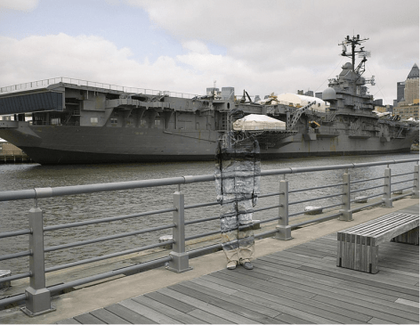 In an expansion of his "Hiding in New York" series, Liu Bolin’s photograph, "Hiding in New York No. 6 – Intrepid," is a multifaceted work speaking to both the prevalence of American strength as well as the consequence of military dominance.