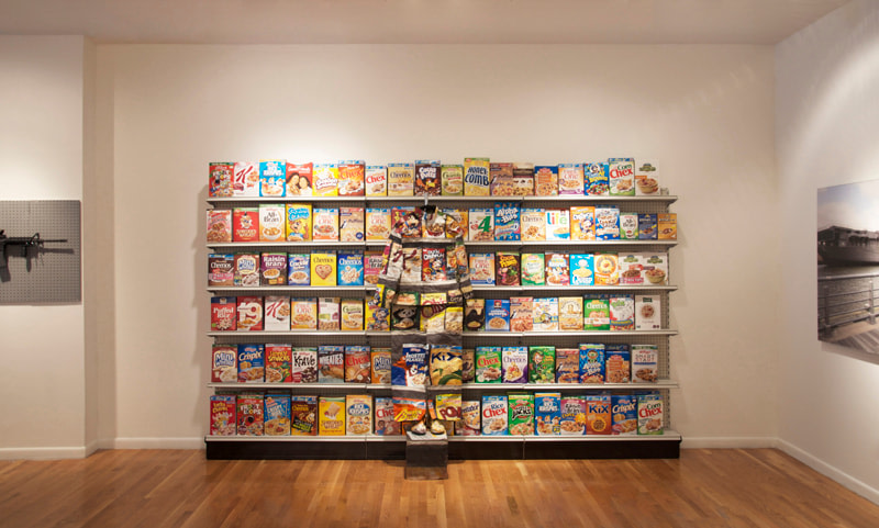 "Mask" is a new body of sculptures that craft a contemporary twist on traditional Peking Opera masks. Peking Opera masks are traditional forms of art that are used to depict heroes, legends, and gods found in Chinese history and culture. They are symbolic reflections of Chinese society and its values. By recreating these masks using the advertising and labeling of popular food and drink products seen throughout China, Liu Bolin addresses the rapidly changing, highly commercialized values of Chinese society. By adding a necessary layer to these works—welding masks—Liu Bolin speaks to the dangers Chinese face in their contemporary society. With constant risk of food and drink contamination, living in China can feel as dangerous as working with molten hot metal. For this reason, the series Mask—an evolution of a traditional art form—is intensely provocative.
