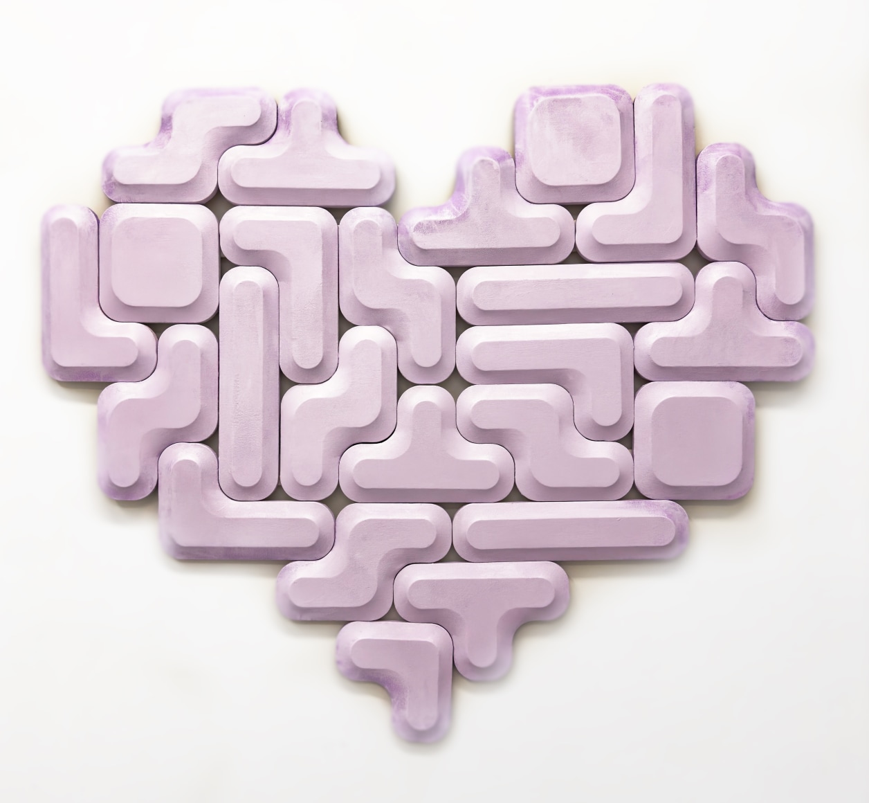 Quan’s “Tetris” series marks another experiment in her internet archaeology. Moving beyond silkscreen, she employs oil paint and movable, interlocking modules to test the dynamics of individuals and collectives. Tetris fragments scattered across different strata are reassembled into a curated whole. “Just like in the game, individuals stack together into a community, searching for their common ground, only to dissolve again through homogenization.”