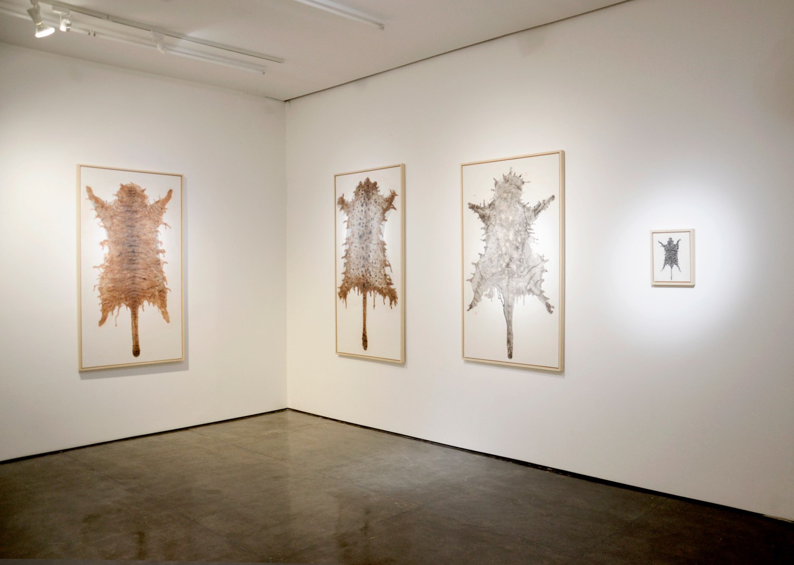 "Another Take on Resurrection Hill" is a series of paintings made from ink which is comprised of the ashes of nine animals and a large tree that Shi Jinsong collected while he was in Australia and Tibet. The works also incorporate dust found within his studio and dirt collected within a Shanxi Buddhist monastery. Each painting is a depiction of an animal's pelt with a dusty texture. In Shi Jinsong's eyes, the works have freed the spirit of the deceased creatures from their physical remains, allowing them to exist in a spiritual realm without restraint.