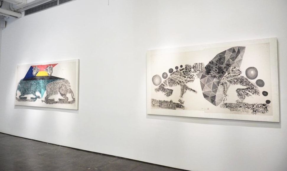 Installation view of Mao Yu, The Sitting Lionsand The Reposed Sheep 2