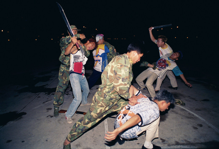 In 1996, Zheng Guogu created The Vagarious Life of Yangjiang Youth, which served as a crucial turning point in his career. Inspired by the growing popularity of East Asian gang films such as Young and Dangerous (1996), Zheng Guogu directed a group of teenagers to dress in the style of the characters in the film and to reenact the violence depicted in selected scenes. The resulting photo-series illustrates the power of mass media and its ability to influence the youth to cast off their own traditional cultural identity in favor of new attitudes and modes of behavior. A complete set of 16 prints from this series will be on display in the exhibition.